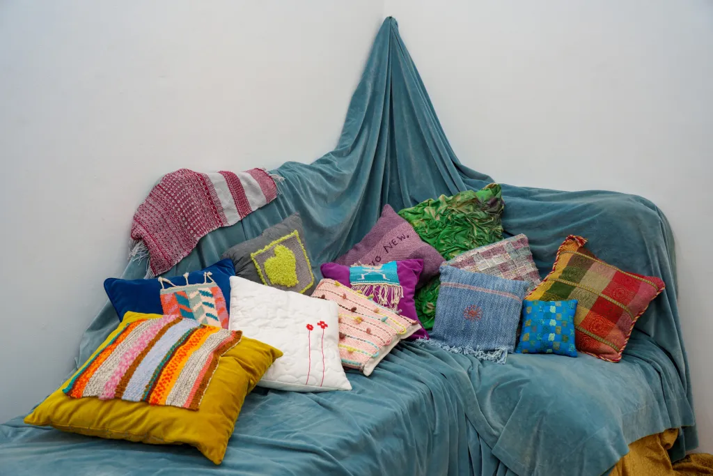 The Liberties Weavers' collaborative artwork Salvage and Fray offers us radical rest, a gesture of care from community to community. It is a sensory experience, an embrace of unique pieces where visitors can pause, sit, read, and exchange ideas in a safe space during an overwhelming complex time.