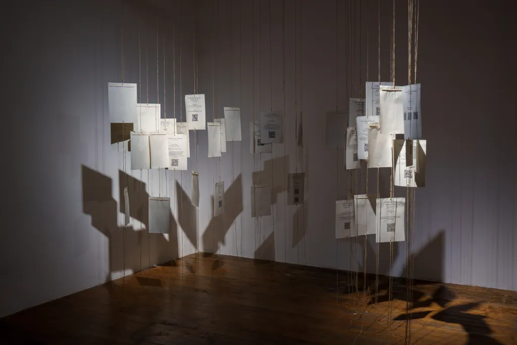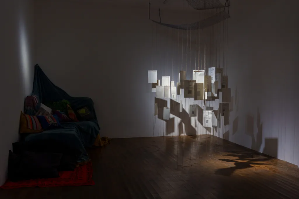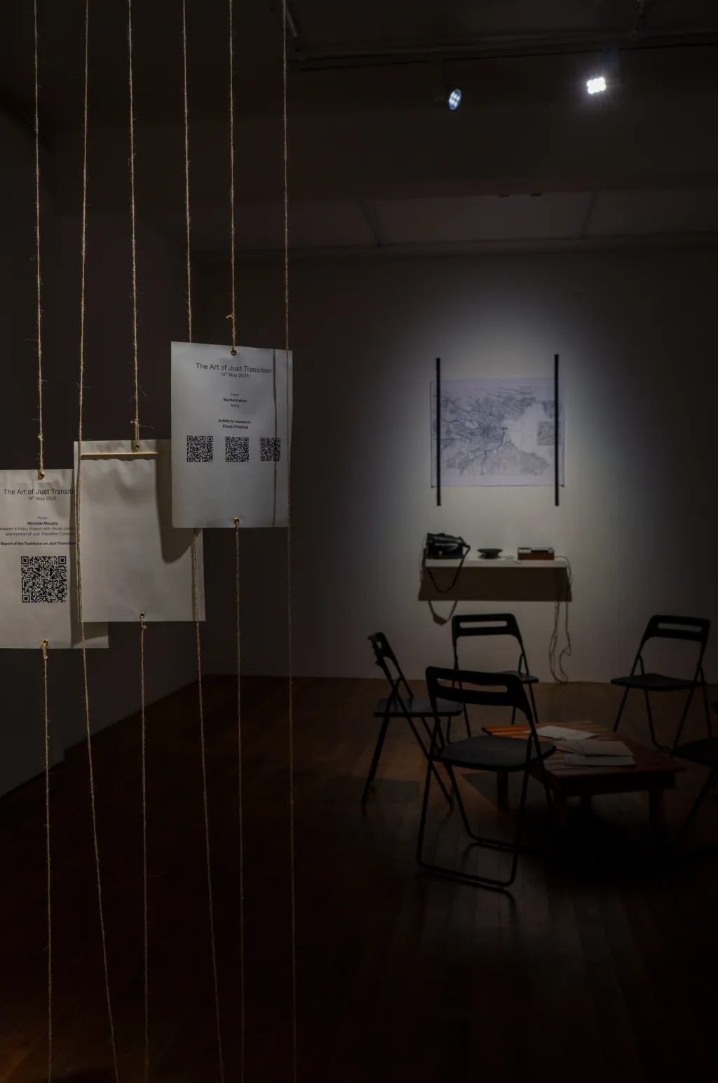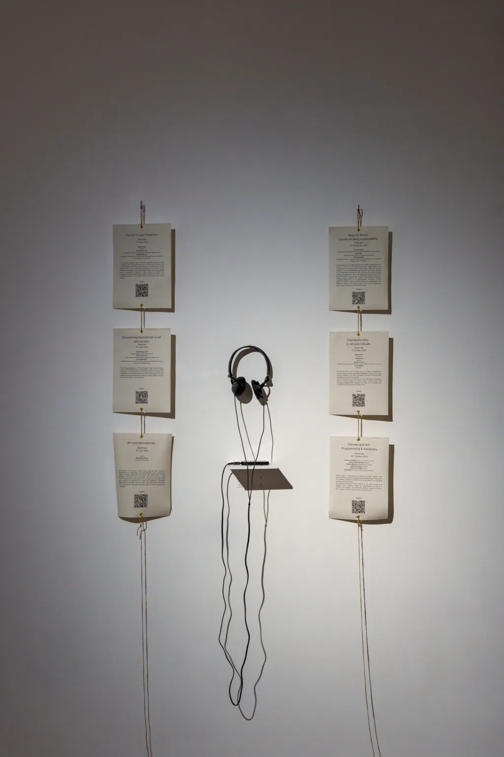 The gallery is conceived as a space for dialogue, memory, and open-ended possibilities, where the audience is agent and author. A living archive of the programme is presented as a constellation of documents and audio recordings, suspended and accessible both onsite and online, inviting re-listening, re-reading, and reflection. The artworks in the show are intertwined with artists' invitations to explore and reengage with the history and storytelling of the land and water, holding space for reflection and softness.