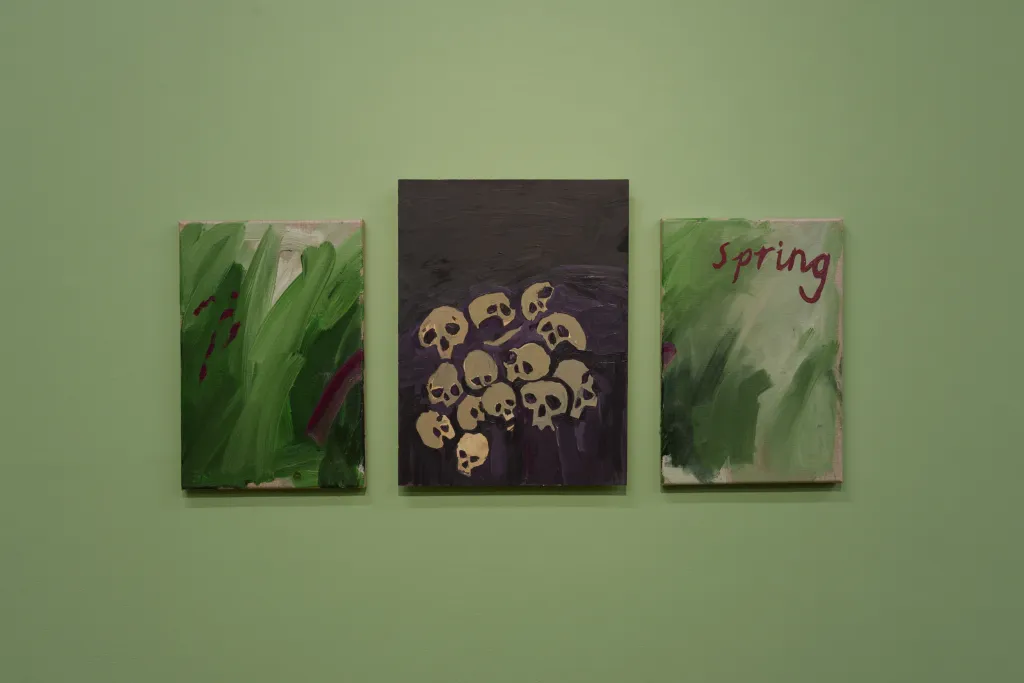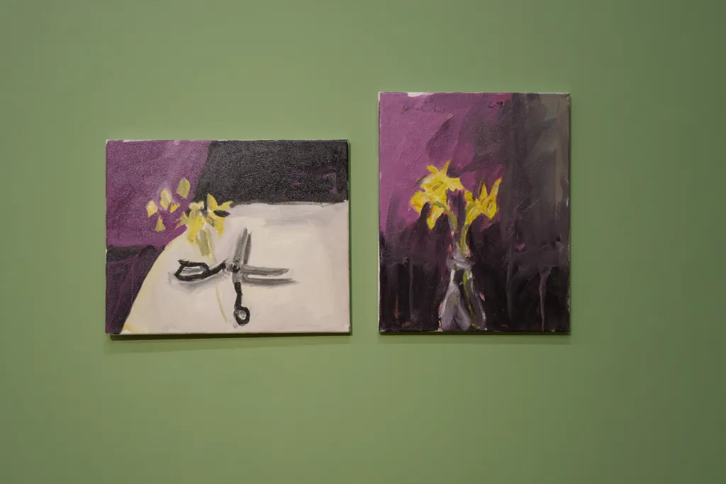 Painter / Painter is an exhibition and performance by Paddy Critchley. In this exhibition, Paddy reflects on recent explorations within his work. This exhibition brings together work that reacts to his lived experience of contemporary folk culture in Ireland, along with references to his work as a painter and decorator. Paddy’s paintings work as a body, each one in dialogue with another. From portraits of friends and flowers to words and meditations, Paddy uses paint as his way of understanding the world. Paddy’s love of Irish ballads and songs, especially the work of Brendan and Dominic Behan, underpins the work in this exhibition.